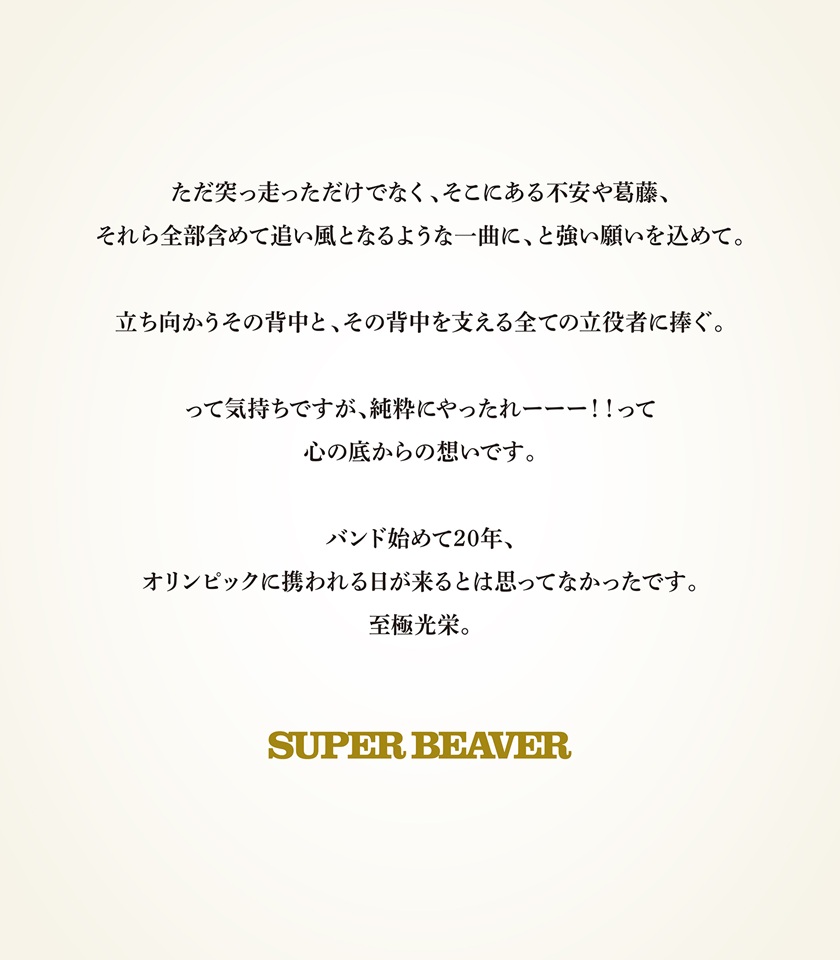大一番に向かうアスリートの想いに触れることができる歌詞。試合に挑む選手と支えてきた全ての人にチカラを届けることのできるメロディー。アスリートはもちろん、目標に向かって進み続ける全ての人を後押しする楽曲となっています。