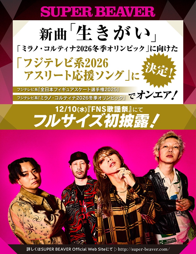 新曲「生きがい」が『ミラノ・コルティナ2026冬季オリンピック』に向けたフジテレビ系2026 アスリート応援ソングに決定!